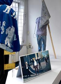 Kamma’s research resonates in 'Casting Call' (2017–ongoing), a series of artistic attempts, events, and manifestations that address aspects of miscommunication between citizens of the European Union due to its many languages and regional rituals. Kamma employs performative strategies inspired by old, stereotypical characters from European popular culture, art, theater, and cinema, brought together in the format of a parade. Kamma developed the Parade through a collection of commissioned texts and props and invited professionals, extras, and respondents to speak their minds by using this collection in playful ways.