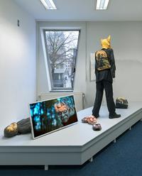 Photos of the exhibition ‘Casting Call: The Collector of Proverbs, The Animal, The Fool, The Selfie-Junkie, The Innocent, The Child, The Drunk, The…’ installed at West Den Haag, 26 November 2021 – 30 January 2022. The exhibition presented a selection of work by Eleni Kamma produced within the framework of her PhD research project.